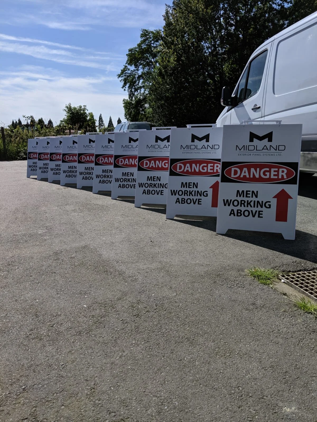 Assorted gallery of sandwich boards and banners created for different businesses.